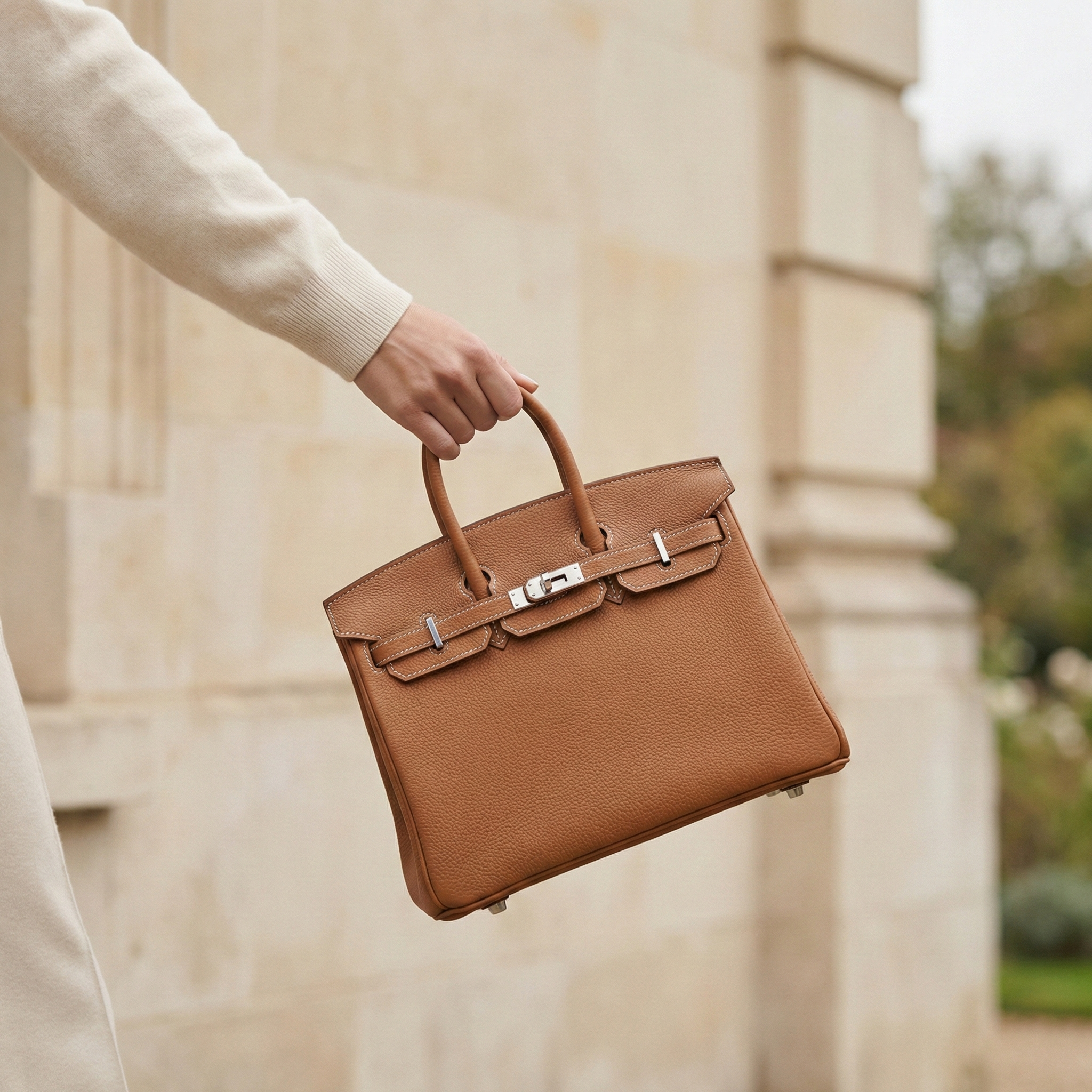 **Brand New** Hermès Sellier Kelly 25 - Ivory Craie Epsom Leather, Permabrass (Champagne Gold)